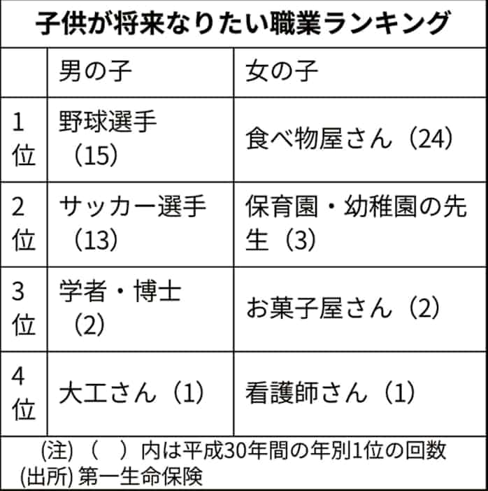 野球選手 食べ物屋が1位 平成30年間のなりたい職業 日本経済新聞